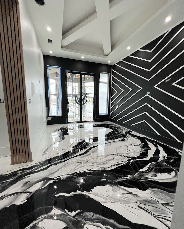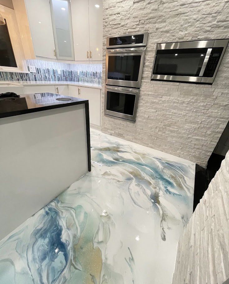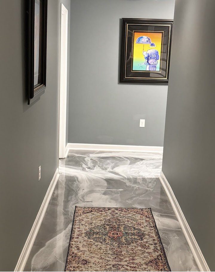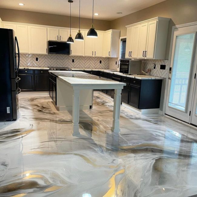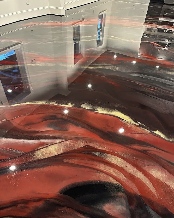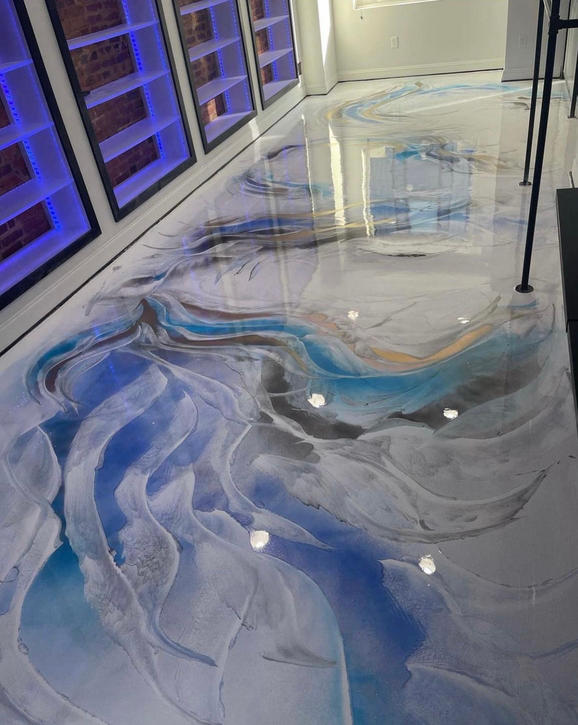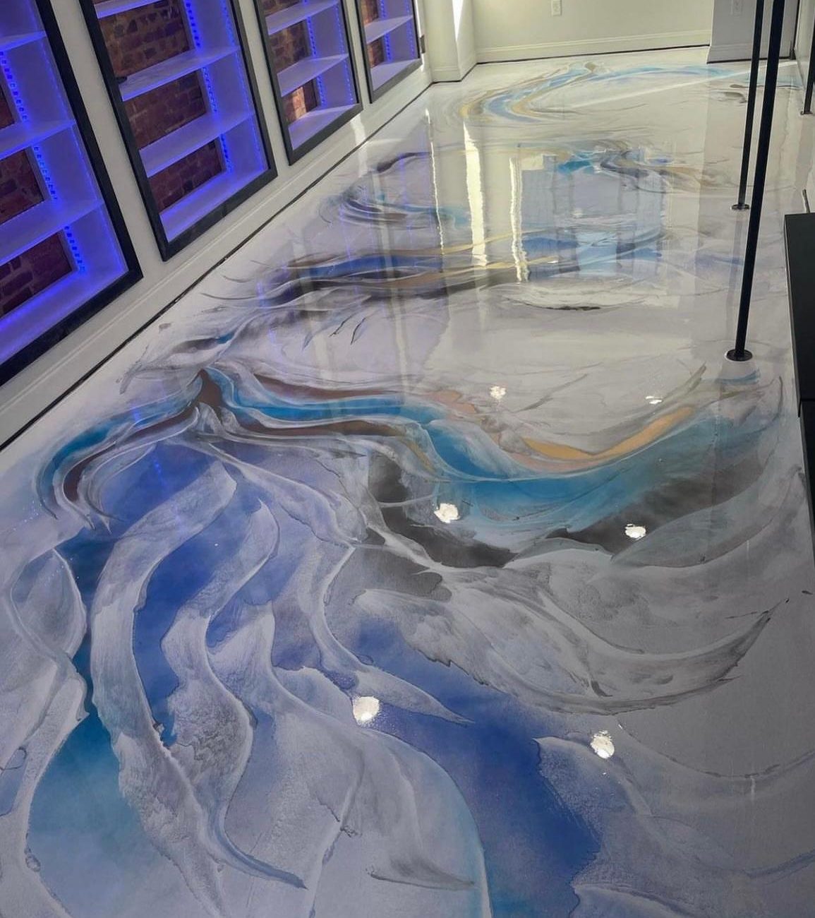 Metallisches Epoxidharz ist eine spezielle Art von Epoxidbeschichtung, die mit metallischen Pigmenten vermischt wird. Diese Pigmente erzeugen beim Auftragen auf den Boden schimmernde, dreidimensionale Effekte, die an fließendes Wasser, geschmolzenes Metall oder Marmor erinnern. Jeder metallische Epoxidharzboden ist ein Unikat, da die Muster und Effekte durch die Art und Weise, wie das Harz aufgetragen wird, beeinflusst werden.