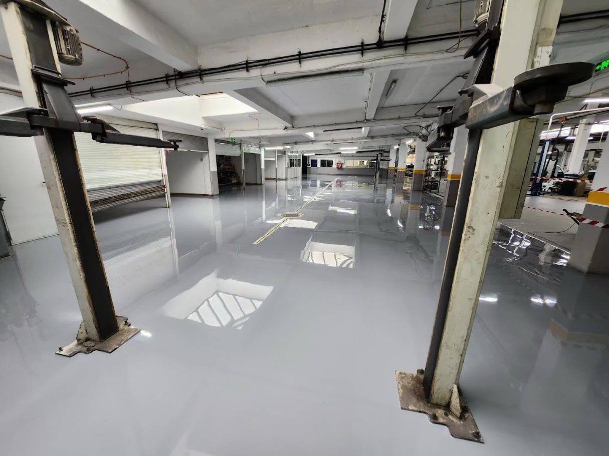 Epoxidharz ist äußerst widerstandsfähig gegen Abnutzung, Kratzer und chemische Einflüsse, ideal für stark beanspruchte Bereiche wie Garagen oder Lagerhallen.