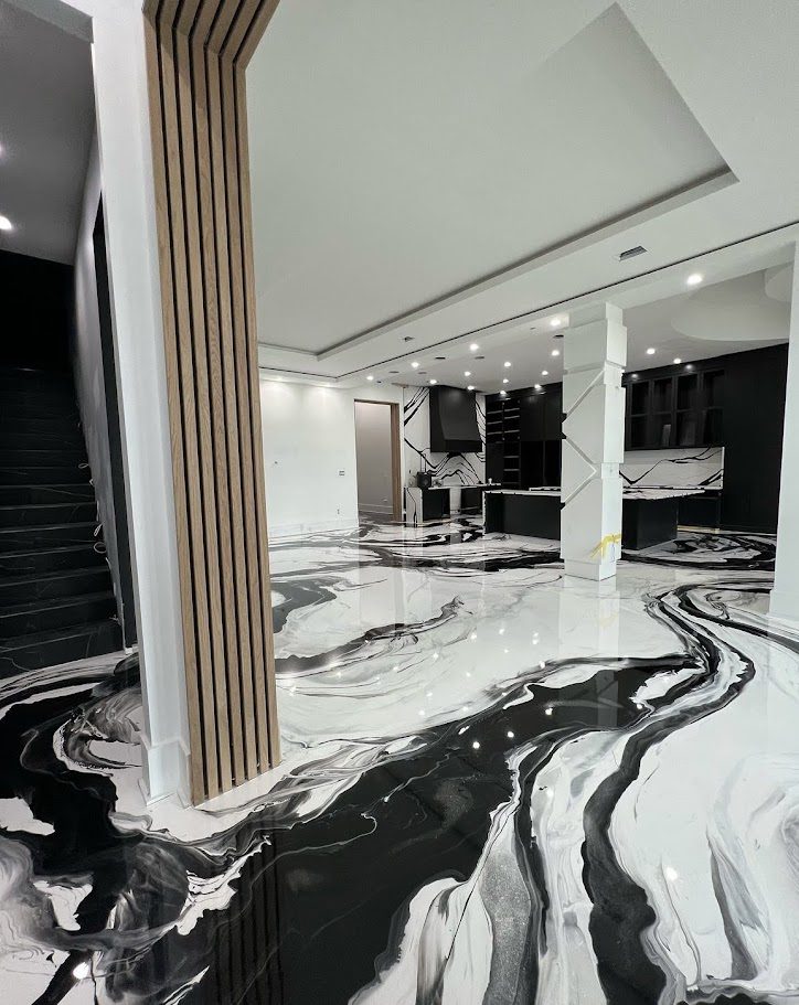 • Wohnräume: Diese Böden sind ideal für Wohnzimmer, Essbereiche oder Küchen, da sie eine luxuriöse Atmosphäre schaffen und gleichzeitig sehr pflegeleicht sind.